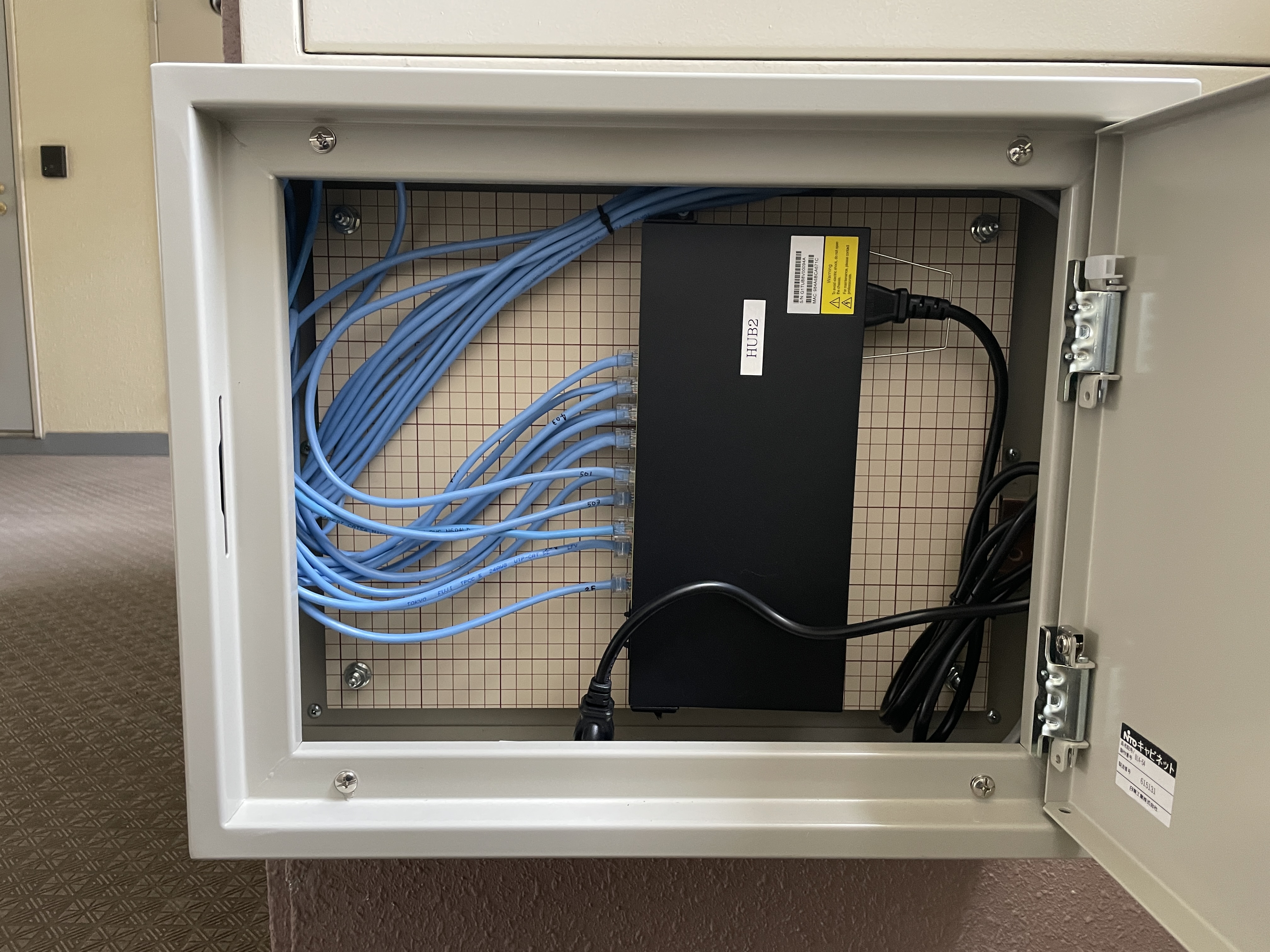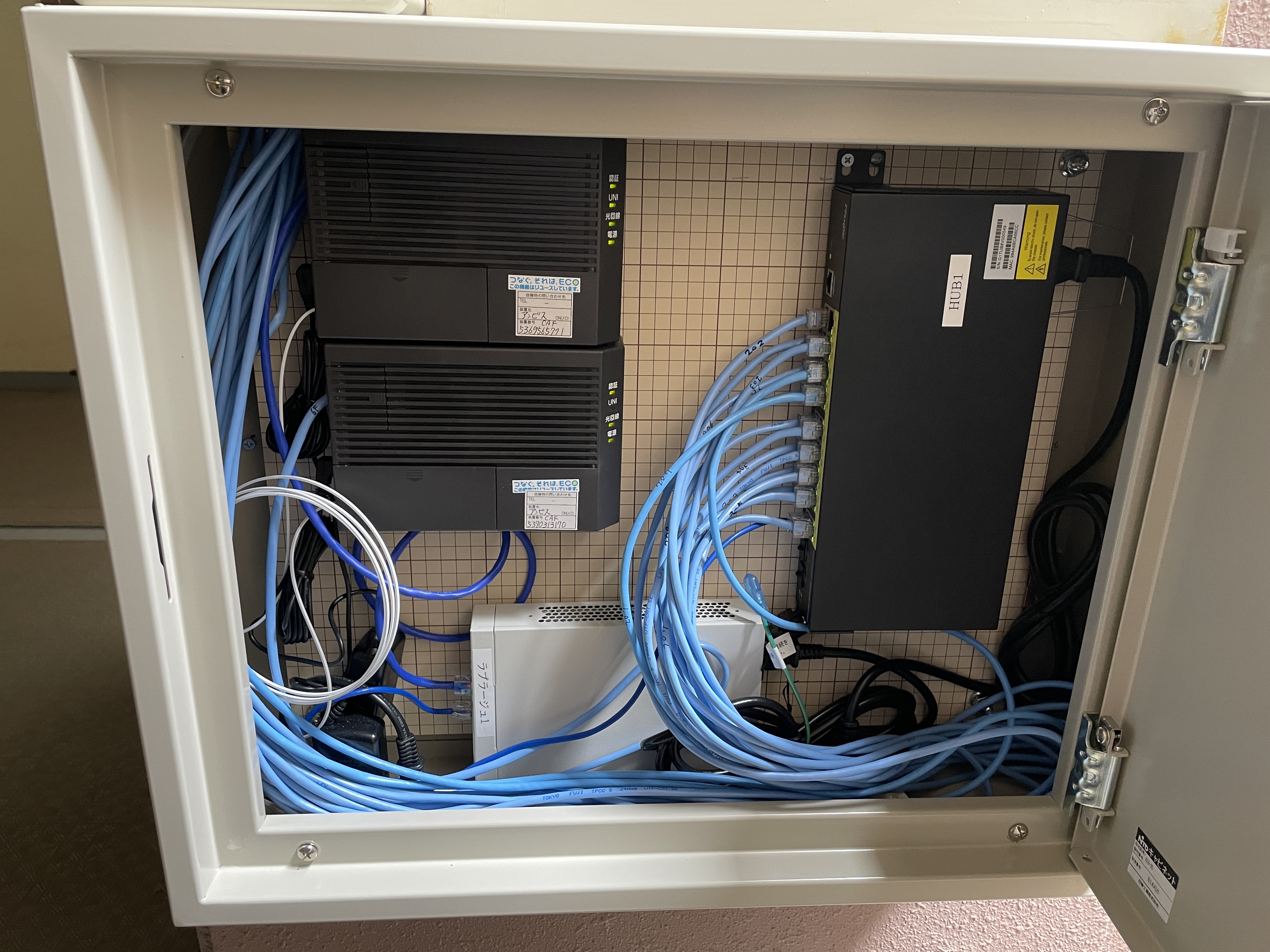 構内でネットワーク機器の設置・設定や通信ケーブルの配線をし、有線または無線のLANを構築